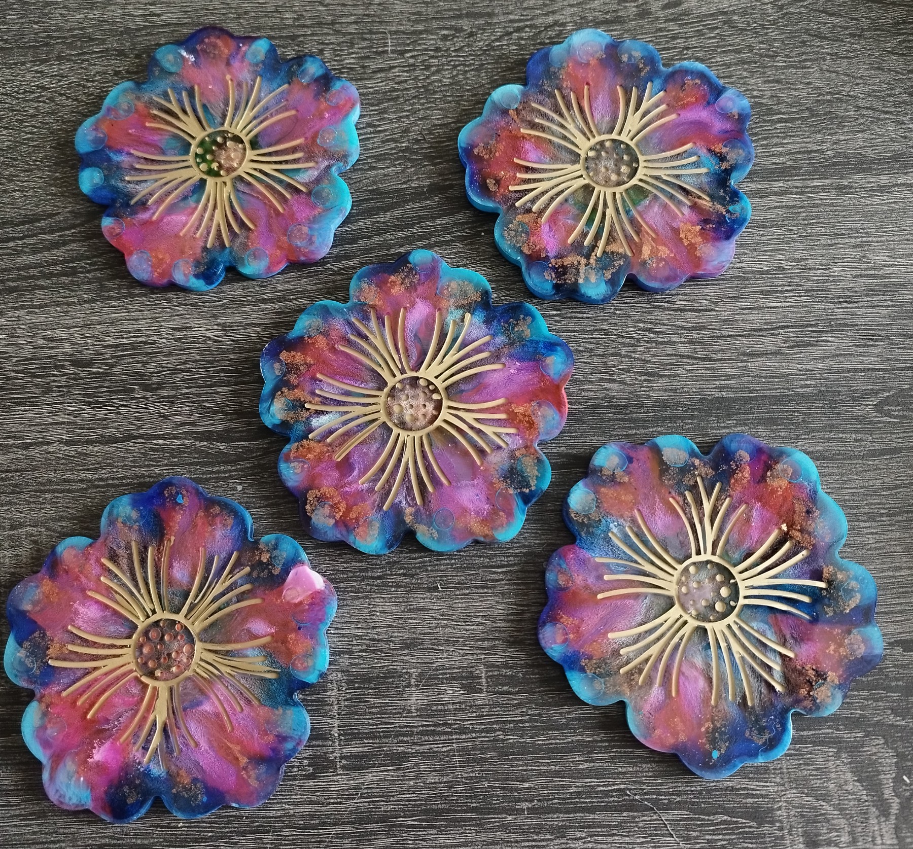 Création unique pour ce lot de 5 sous-verres.