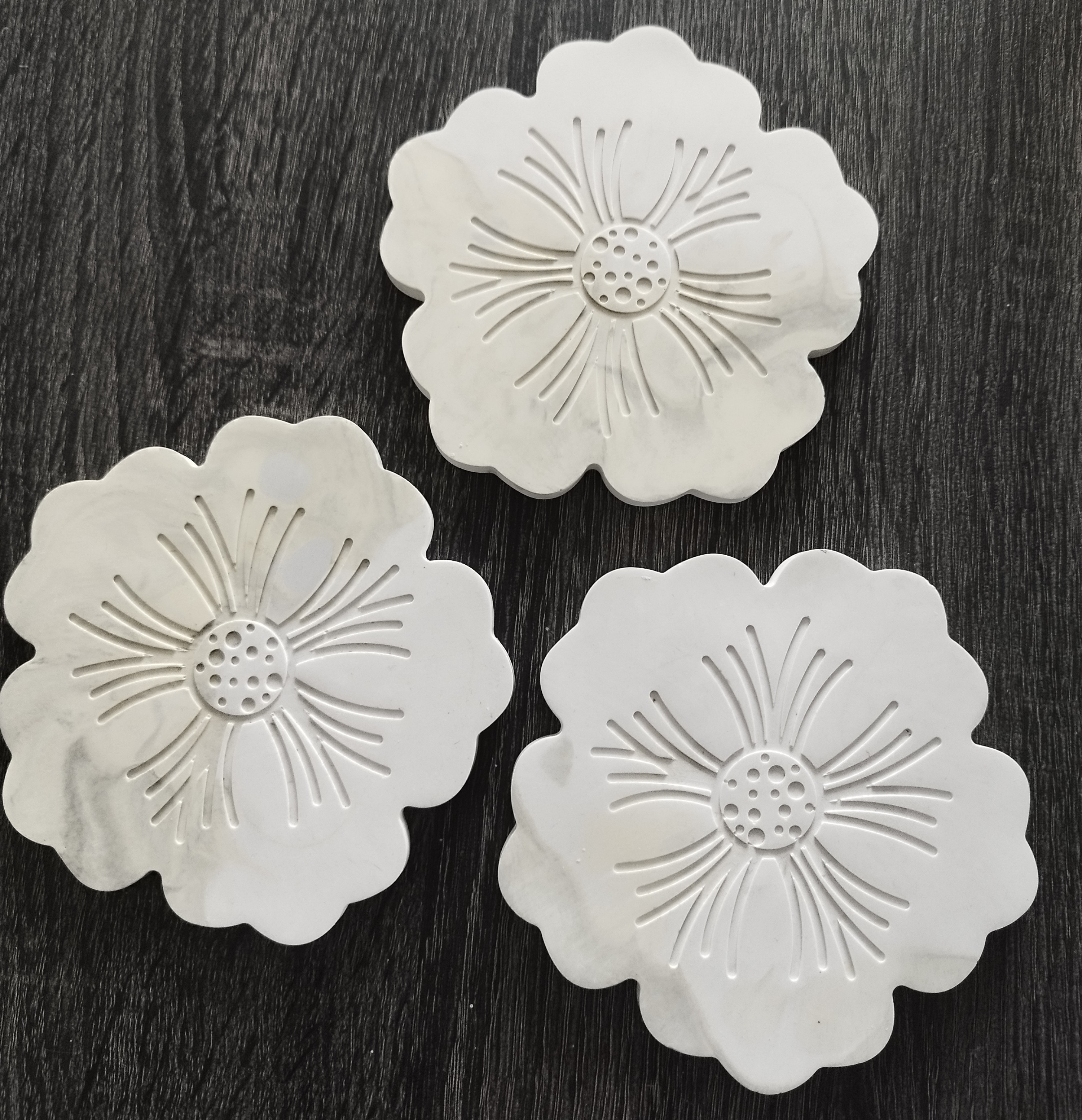 Création unique pour ce lot de 3 sous-verres motif fleur.