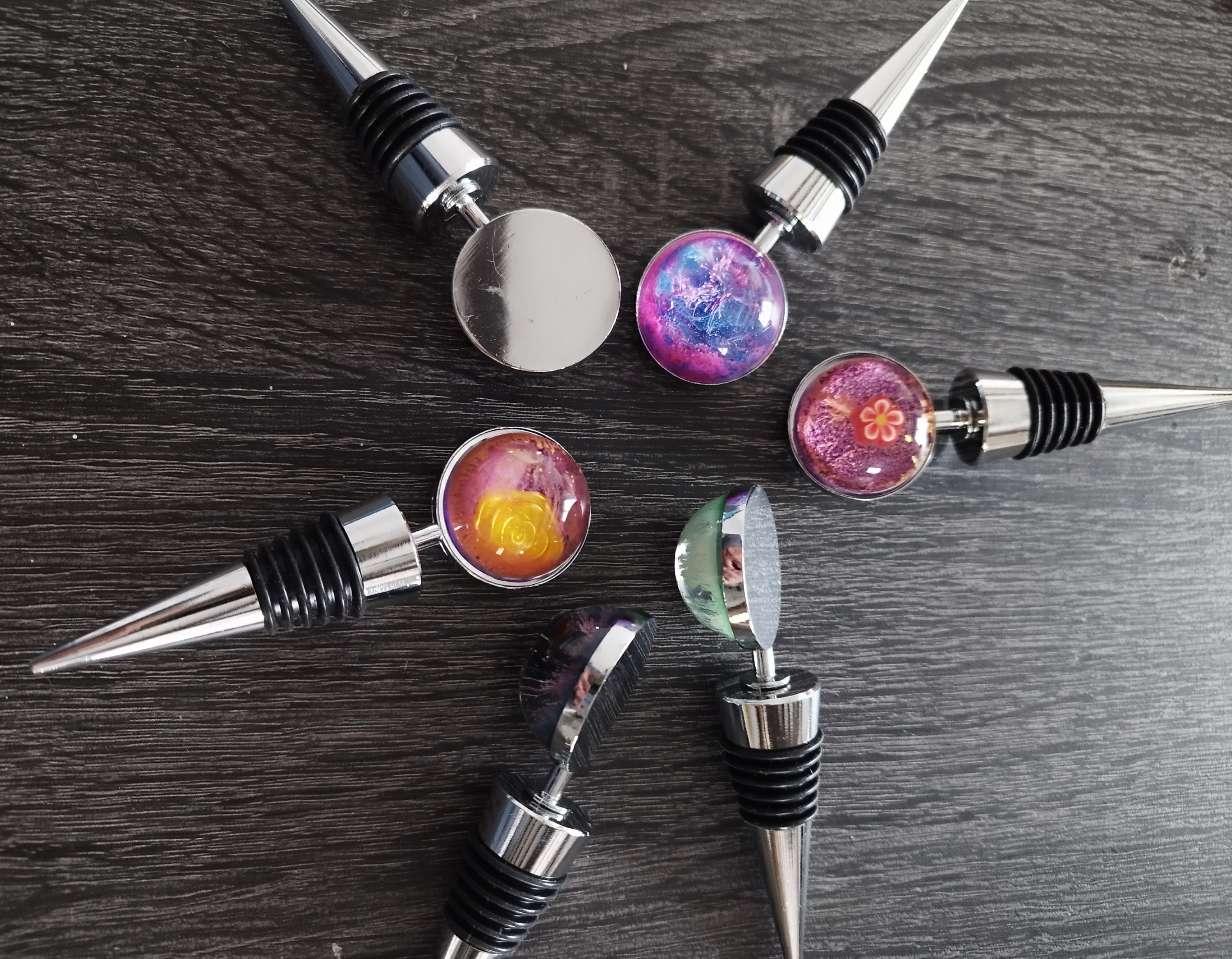 Réalisé en résine teintée applliquée sur un bouchon métal.